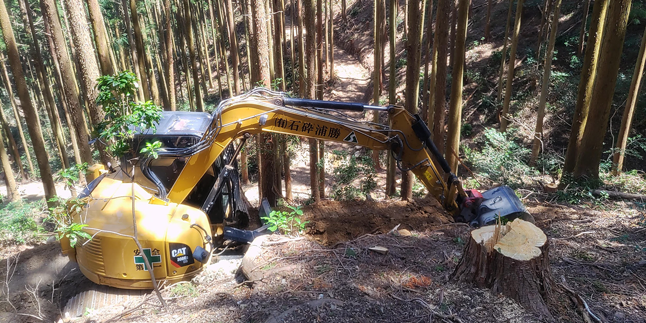 勝浦砕石では、地域の山林資源を未来へつなぐため、林業事業にも取り組んでいます。適切な間伐や伐採を行い、健全な森林の維持・再生を図るとともに、伐採木の有効活用にも力を入れています。林業を通じて得られる木材は、木材チップや建築資材、バイオマス燃料などに加工され、多様な分野で活用されています。また、森林整備による土砂災害の抑制や、水源涵養、CO2吸収など、環境保全の面でも重要な役割を担っています。地元の山を知り尽くしたスタッフが中心となって、自然と人が共に生きる持続可能な森林づくりを実現し、地域に根ざした林業を次世代へとつないでいきます。