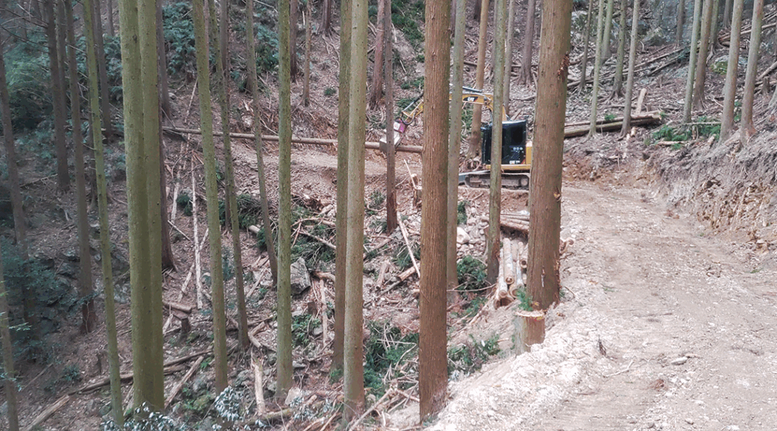 | 業務内容 | 徳島市飯谷町の山林を中心に、林内に作業道を整備し、主に間伐を行う |